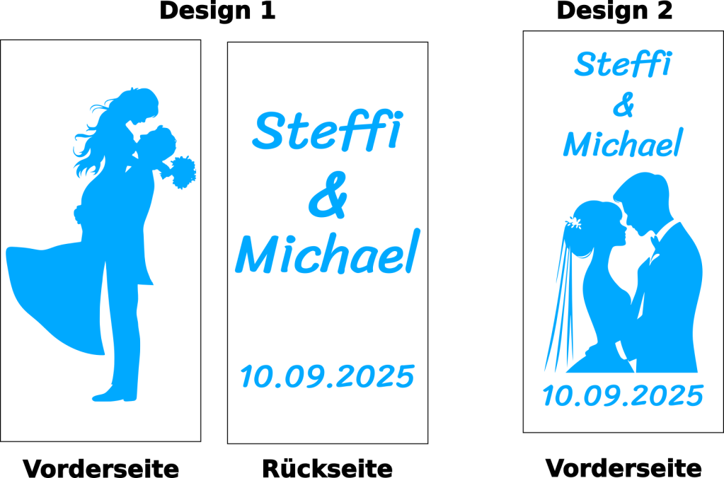 Ob die Namen des Brautpaares, das Hochzeitsdatum oder ein besonderes Symbol der Liebe: Mit vielfältigen Designs und Personalisierungen schafft Ihr unvergessliche Erinnerungen für Eure schönsten Momente.