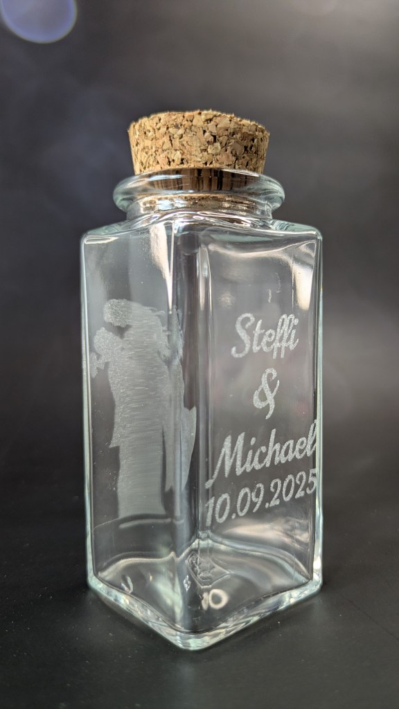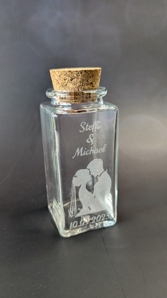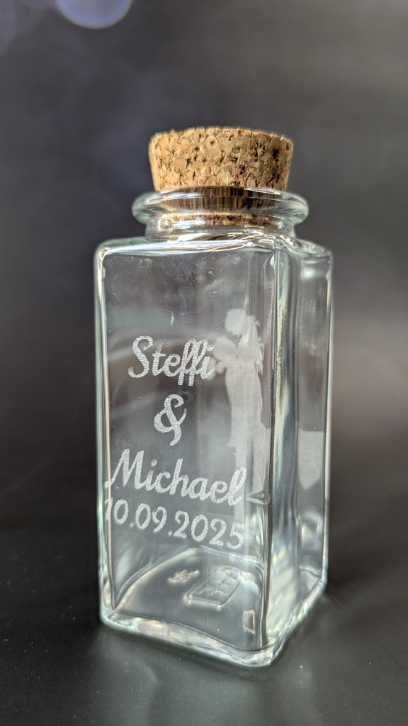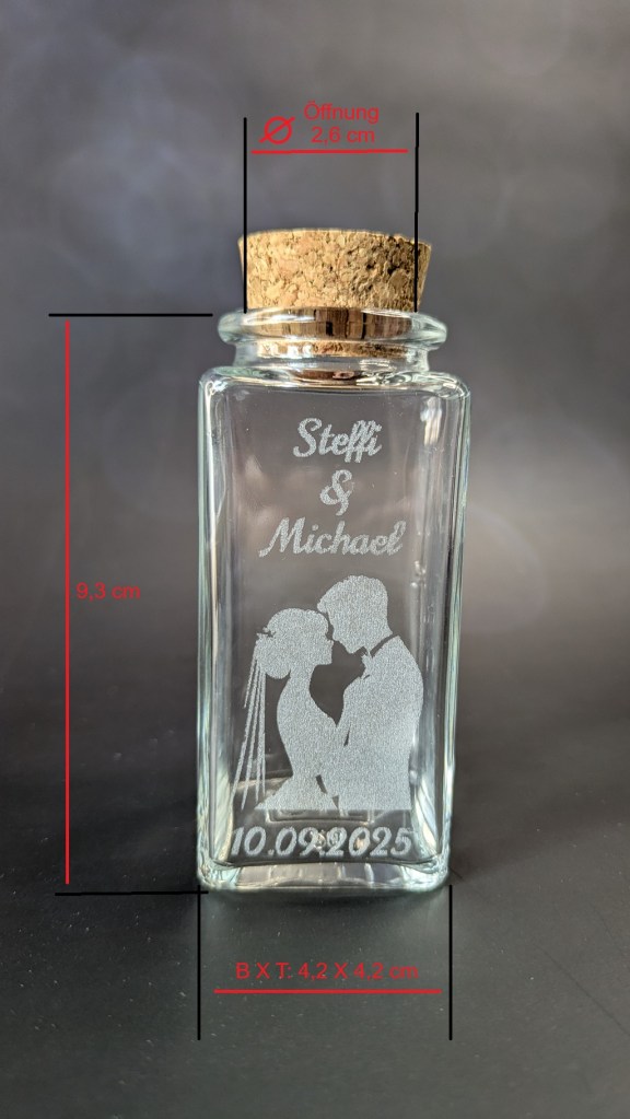 Unsere zauberhaften Glasfläschchen verleihen Eurer Hochzeit das gewisse Etwas – als liebevolle Dekoration oder als ganz persönliches Geschenk für Eure Gäste. Jedes Fläschchen wird mit einer einfühlsamen Gravur liebevoll direkt ins Glas eingraviert – individuell gestaltet nach Euren Herzenswünschen..